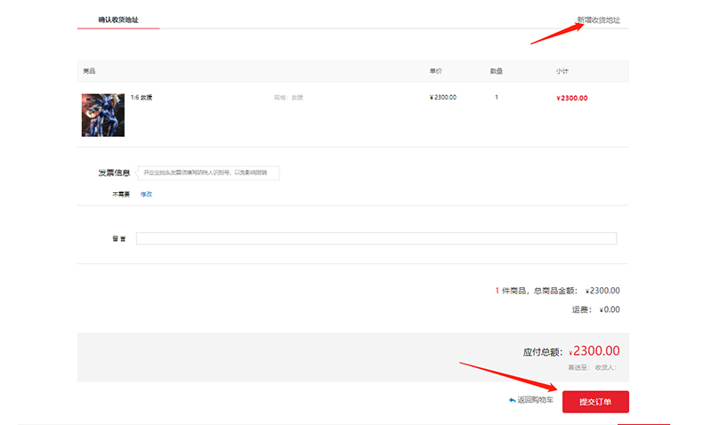 第四步,填写您的收件地址,确定订单信息没问题后,点击【提交订单】