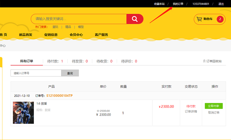 第六步,付款成功后,您就可以在【我的订单】中看到这笔订单啦~